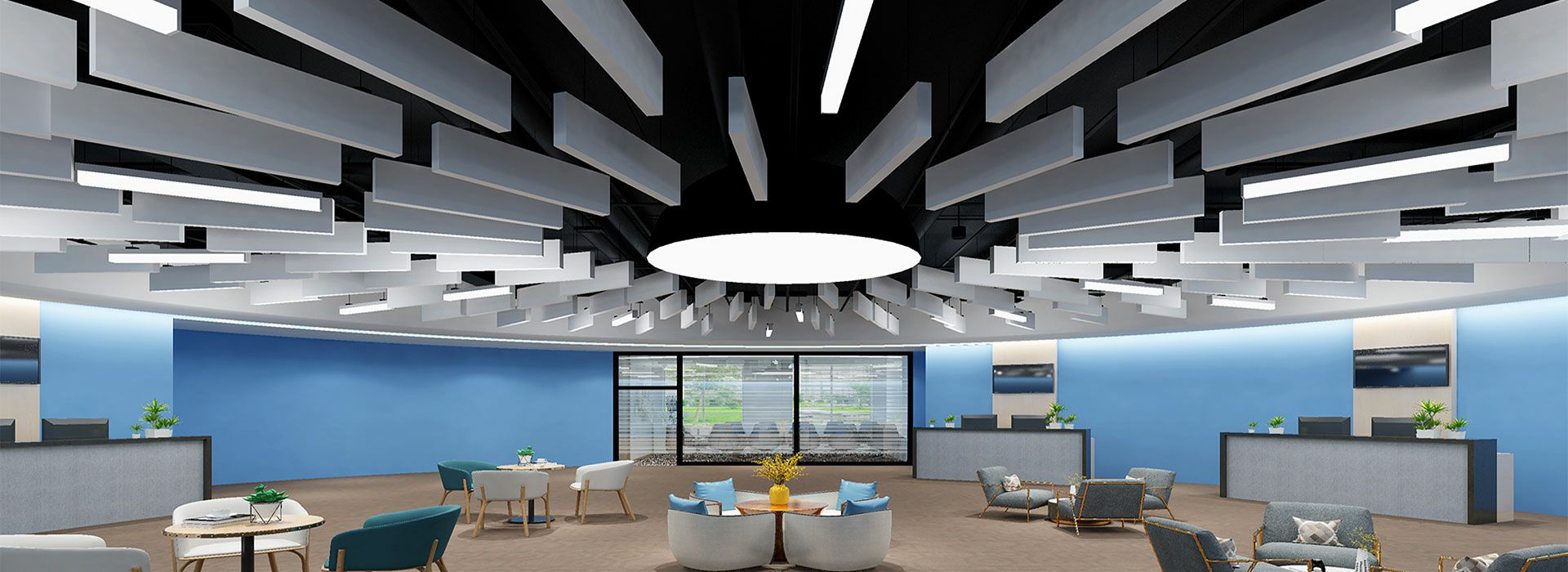 合肥工业大学研究中心悬挂吸声体项目 由我司负责生产和安装的悬挂吸声体项目,由多片...